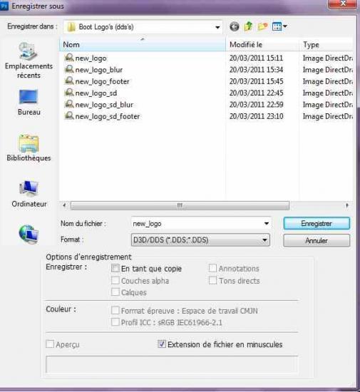 * When you modify an image, then save in the same folder where you took to replace the old with yours. (To register go to File=> Save As, select the folder Boot Logo's (dds's) and do not forget to set the format before on DDS as below: