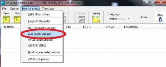 * Now run Simplyzip and go dansExternal progs and click ZLIB (pack / unpack)