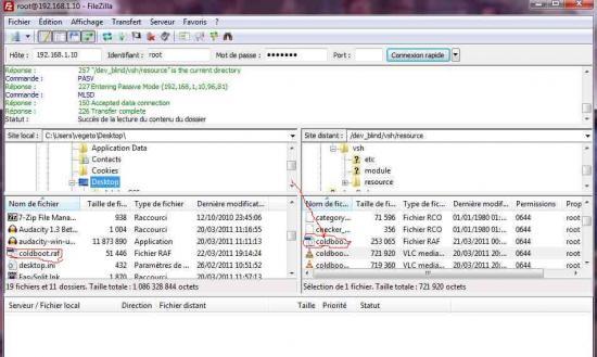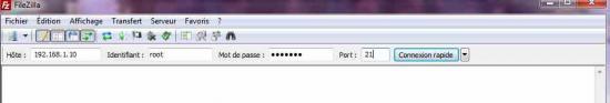 * On your PC, launch Filezilla in the box to host => address IP Console / identifier in place => root / password set in => openbox/ put in Port => 21 then click QUICK CONNECTION