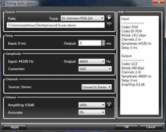 8 Then go to Audio and Audio encoding settings and adjust it exactly like the picture below in the box patch , added the wordstereo in the name of your song, and then click Apply then OK